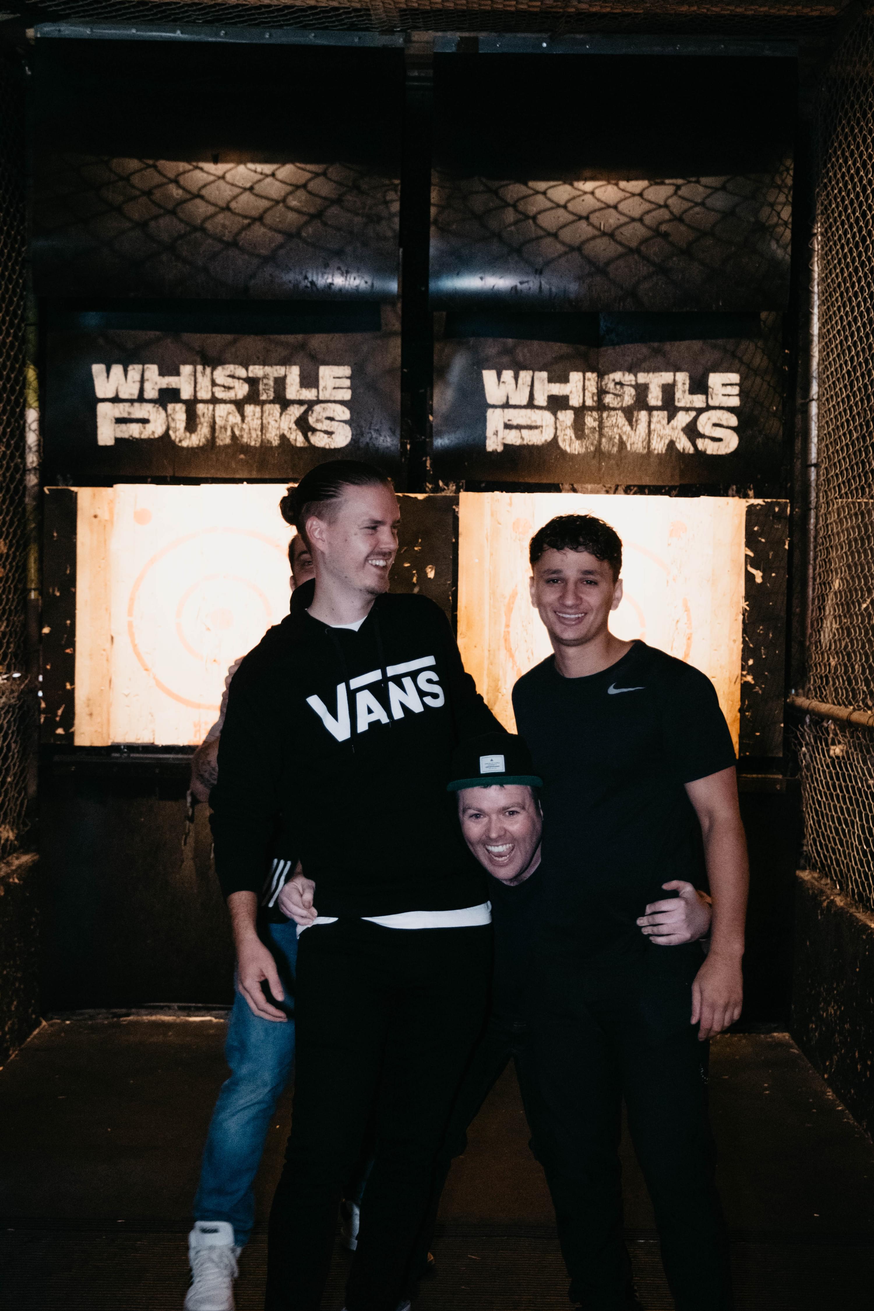 Smiles all round at axe throwing, releasing lots of endorphins!